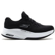 This athletic shoe features a mesh upper with supportive overlays and a traditional lacing system. It has a significantly thick, sculpted sole with a curved profile, indicating cushioning for walking or running. The overall design is sleek and performance-oriented.