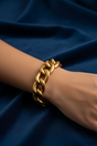 Elegant bracelet crafted from gold-plated metal, featuring an interconnected wide chain design. It is characterized by its attractive design and ease of wear.