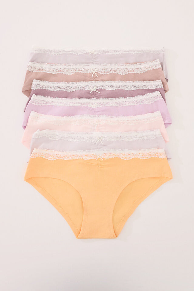 Women Secret-Pack of 7 wide cotton panties with lace in combined colors-sold by FIG