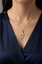 An elegant necklace crafted from gold-plated stainless steel, featuring a snake-shaped pendant meticulously set with sparkling white crystals and green crystal eyes. It adds a unique touch to your daily or evening outfits and pairs beautifully with open-neckline tops to highlight its design. This makes it a wonderful choice as a thoughtful gift for friends or for special occasions.