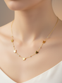 A delicate stainless steel necklace with a gold-tone finish, featuring small butterfly charms alternating with sparkling crystal accents. Its minimalist design is perfect for both everyday wear and evening occasions, and it layers beautifully with other necklaces. This piece makes a thoughtful gift choice for friends or special events.