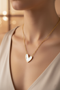 This women's necklace features an elegant heart pendant crafted from natural mother-of-pearl, encased in a gold-toned stainless steel frame. It adds a delicate touch to your everyday attire and pairs beautifully with open-neckline tops or when worn as a standalone statement piece. This necklace serves as a lovely and thoughtful gift option for friends on various special occasions.