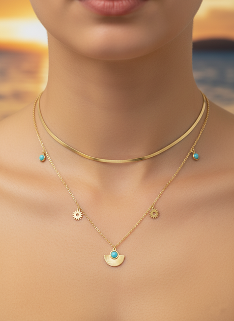 Women’s Necklace Layered Evil Eye Charm Colorful Stone