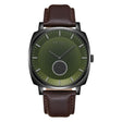 TRNDA SQUARE BLACK STAINLESS STEEL MEN'S WATCH - SEAWEED GREEN DIAL & BROWN LEATHER BAND