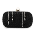Mr Joe - Dazzling Black Pearl Hardcase Clutch - Silver Clasp With Chain Strap - 4149