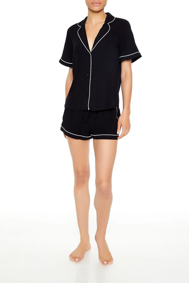 فوريفر 21-طقم بيجامة مكون من قميص وشورت بحواف مزخرفة-للنساء