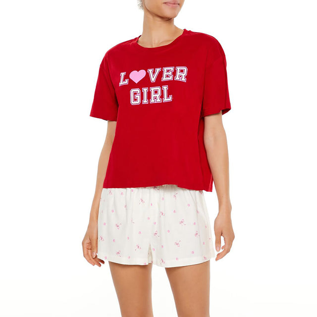 فوريفر 21 - تي شيرت بيجامة برسومات للنساء - يباع بواسطة اف اى جى - M / أحمر تم طلبه مسبقًا وسيتم شحنه بمجرد عودته إلى المخزون.