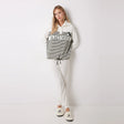 - Striped Top With Mickey Embroidered On The Front, Funnel Neck With Crossover And Matching Buttons. Dropped Sleeves And Cuffs. Adjustable Waist With Drawstring.