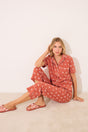 Shirt pajamas made of 100% cotton fabric, in orange color, with contrasting Mickey Mouse print. Ideal for being at home in total comfort and style. - Short-sleeved top with shirt collar, central buttoning, patch pocket on the chest or chest and contrasting piping detail. - Long lounge-style trousers with adjustable elastic waistband with contrasting drawstring. - Also get the matching slippers for home and accessories from the collection. - By choosing our cotton products, you are supporting our investment in the Better Cotton initiative. She wears size S. Ref. 3139909 Composition and care Composition 100% cotton Care Maximum washing temperature 30C. Short spin Do not bleach Do not tumble dry Gentle ironing Do not dry clean