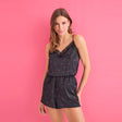 Women Secret - Satin Print Short Jumpsuit for women - sold by FIG - Black / M تم طلبه مسبقًا وسيتم شحنه بمجرد عودته إلى المخزون.