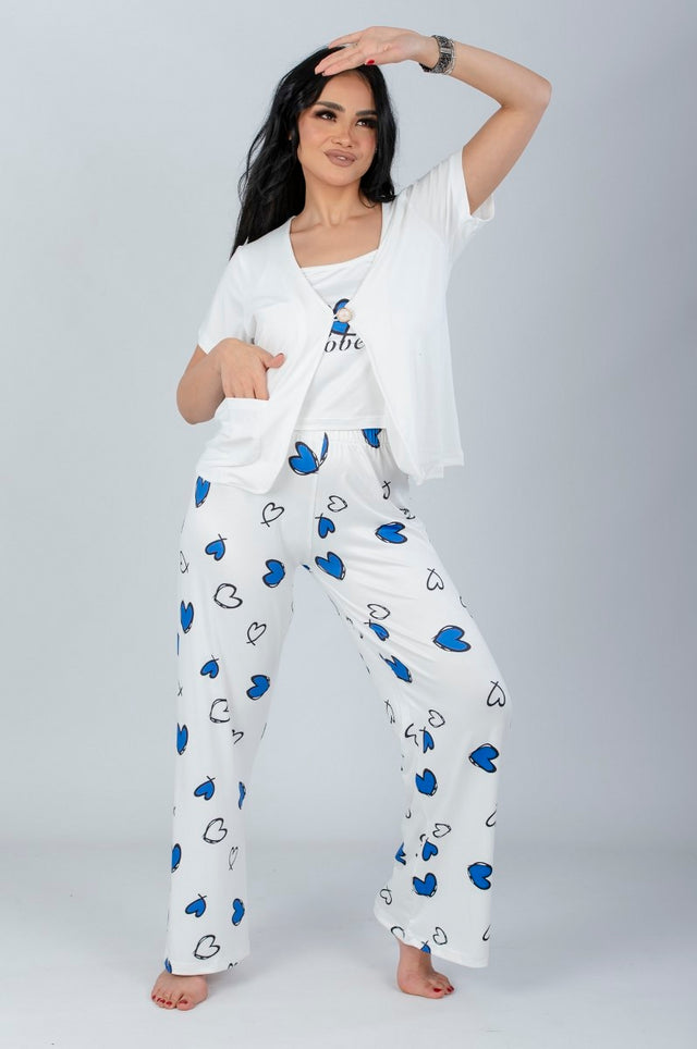استمتع بالليالي المريحة مع لمسة من الرومانسية في طقم بيجامة القلب الأنيق المكون من 3 قطع من Shechick. تتميز ملابس النوم الساحرة هذه بطباعة قلب رقيقة على القماش الناعم.