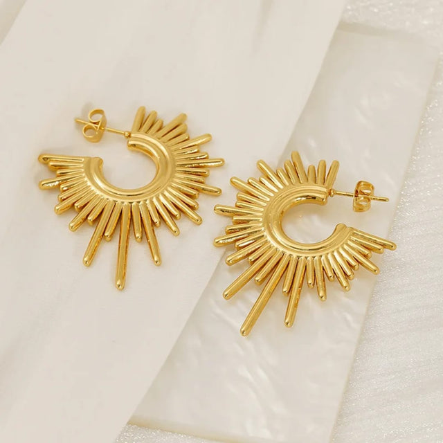 Elegant sun-shaped earrings crafted from 18k gold plated stainless steel. They feature a stunning design and are easy to wear. Perfect for adding a touch of elegance to your daily look.