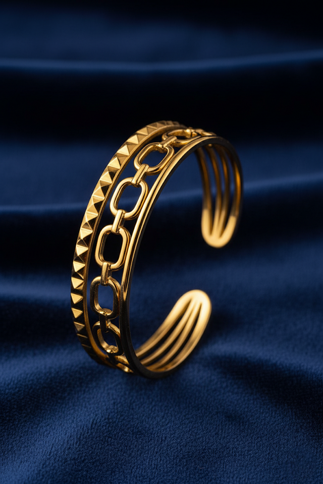 Elegant tripple bracelet design, made of high-quality stainless steel. Perfect to add a luxurious touch to your daily or special occasion looks. Shine confidently with this stunning piece that combines elegance and sophistication. Suitable for casual and formal looks, ideal as a special gift.