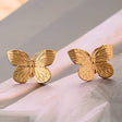Elegant butterfly-shaped earrings crafted from high-quality gold-toned metal. A luxurious design suitable for both special occasions and everyday wear. Featuring intricate details that give it a chic and attractive look.