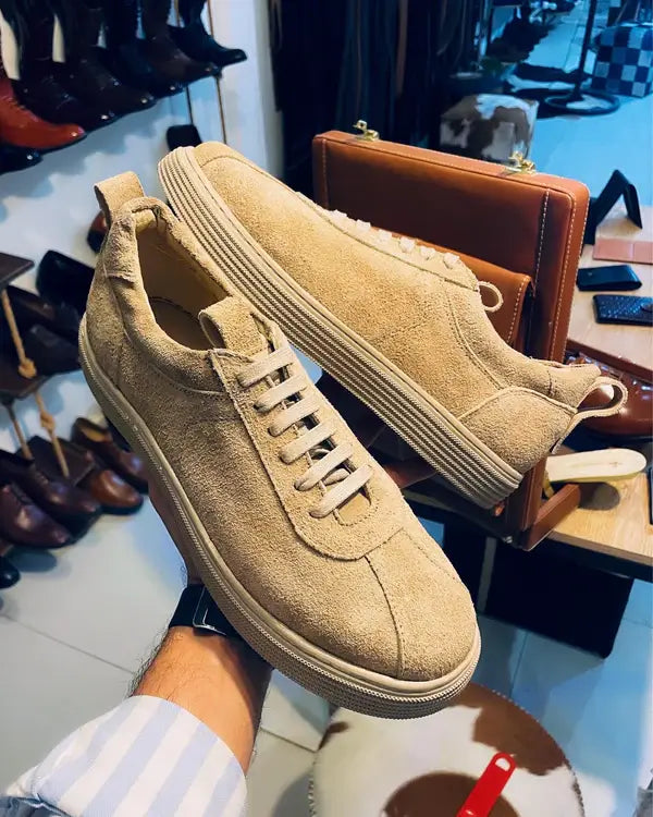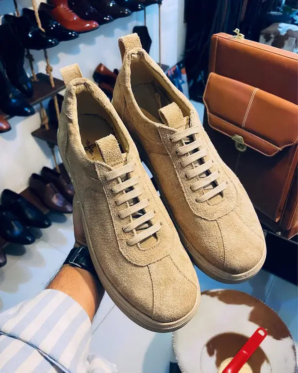 Premium handmade genuine suede" Lace-up Flat sneakers with a rubber sole and natural leather lining, Durable sole stitching, Perfect for both smart and casual looks.