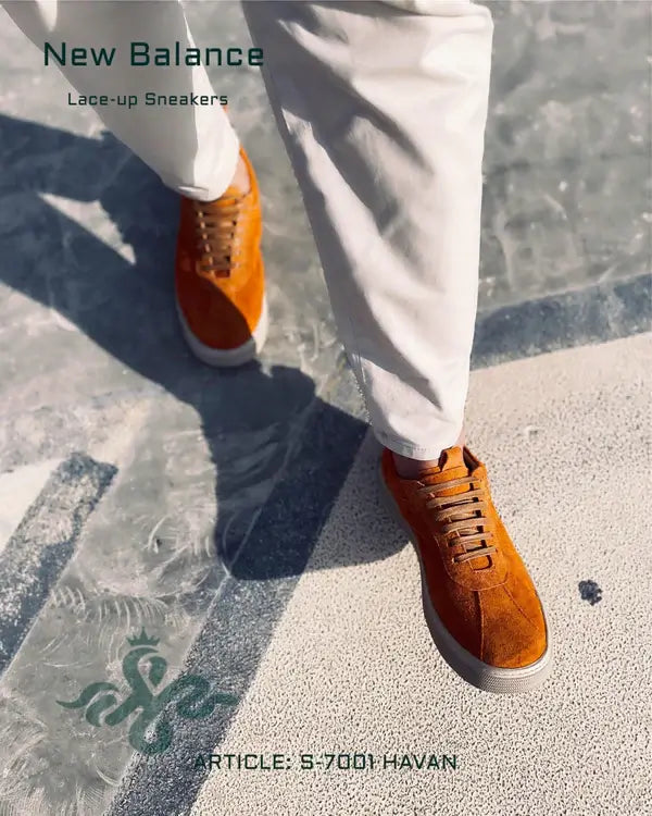 Premium handmade genuine suede" Lace-up Flat sneakers with a rubber sole and natural leather lining, Durable sole stitching, Perfect for both smart and casual looks.