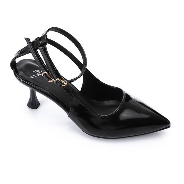 جلد صناعي من Verne، مظهر مصقول، كعب بأحزمة كاحل مزدوجة قابلة للتعديل مع إبزيم ذهبي اللون، تصميم منحني مريح بكعب متوسط، مثالي للمناسبات الرسمية وشبه الرسمية، صورة ظلية لمقدمة مدببة لحافة متطورة، نوع الكعب: كعب صغير - ارتفاع الكعب 5 سم