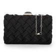 Mr Joe - Woven Black Satin Hardcase Clutch - Silver Clasp with Detachable Chain 4150