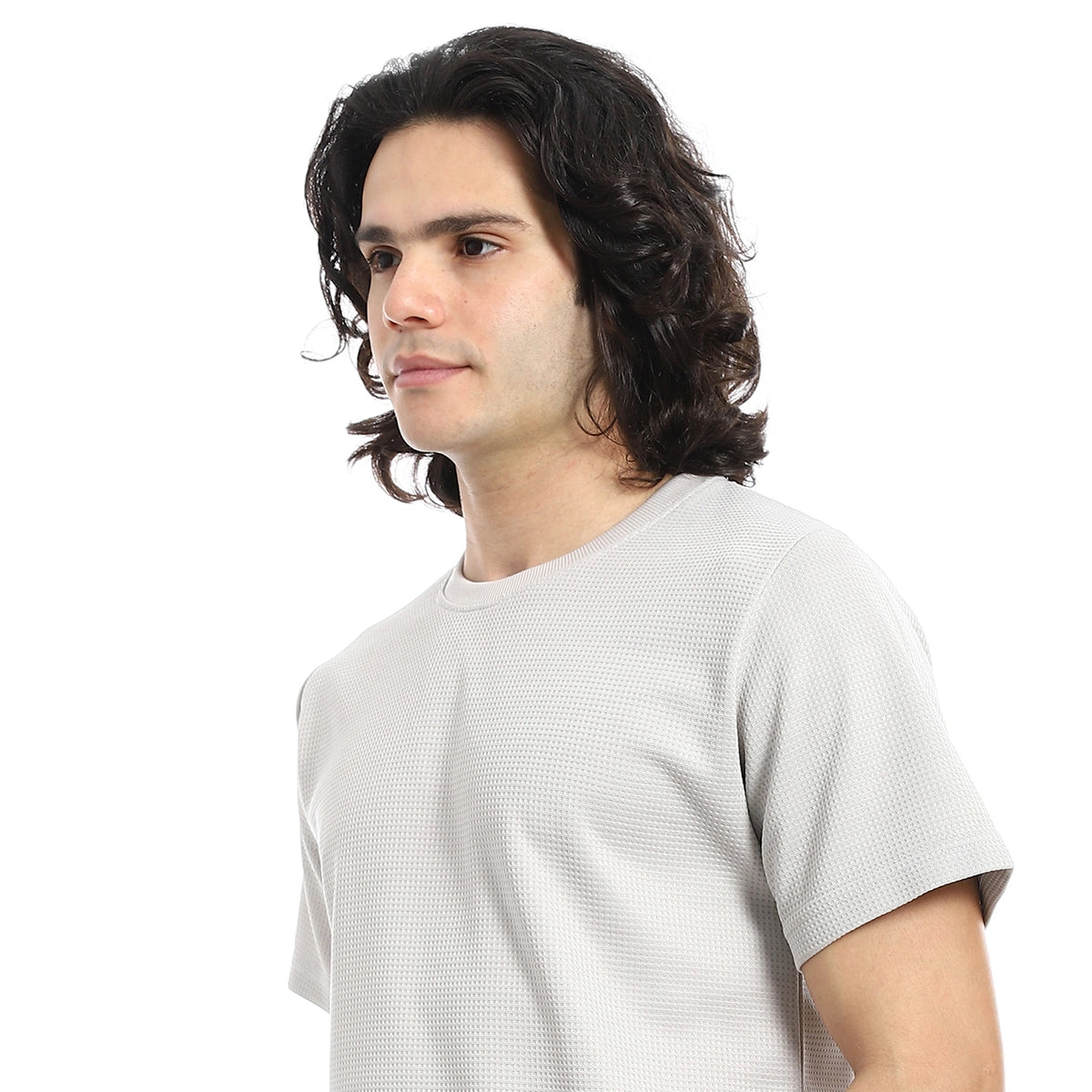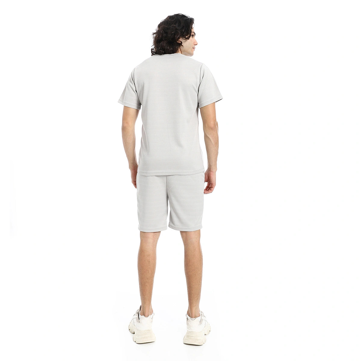 طقم تي شيرت وشورت سهل الارتداء بنقشة بيكيه باللون الأحمر - للرجال