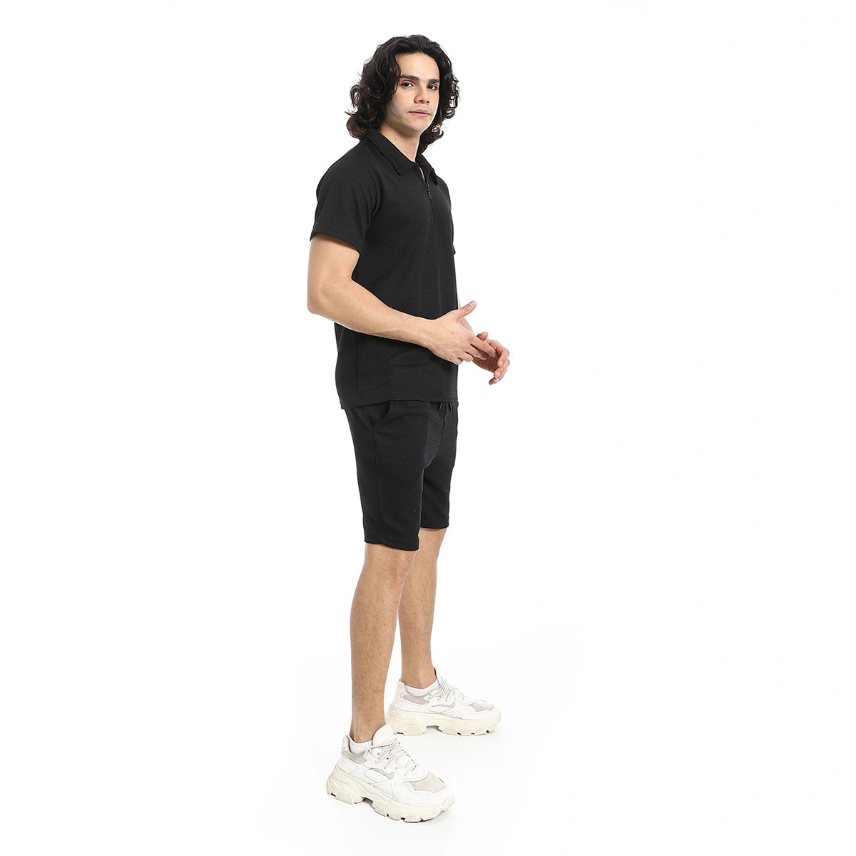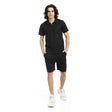 ريد سيركل - طقم تي شيرت وسروال قصير بياقة مطوية باللون الأسود للرجال