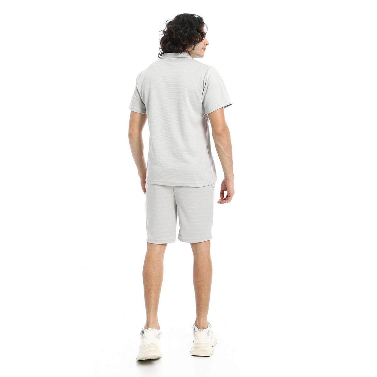طقم تي شيرت وسروال قصير بسحاب وياقة مطوية باللون الرمادي السحابي من ريد سيركل - للرجال