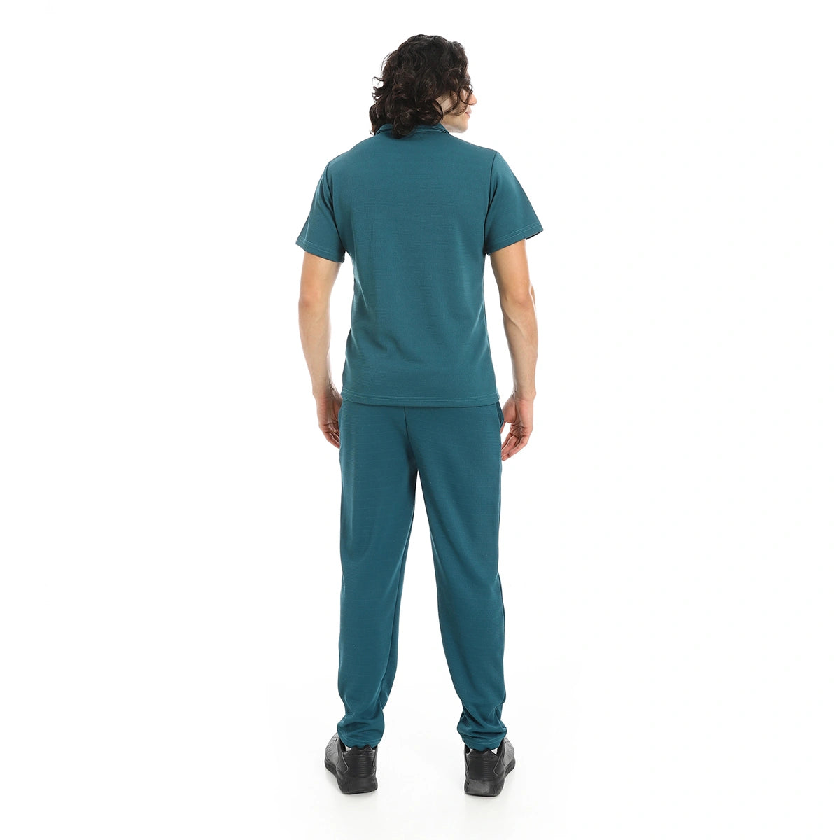 ريد سيركل - طقم تي شيرت وسروال بياقة مطوية من بيكيه - للرجال
