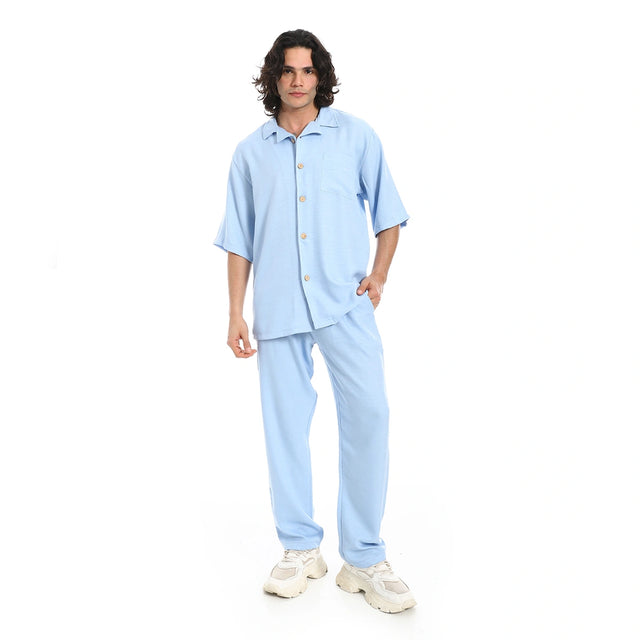 ريد سيركل - طقم قميص وسروال كتان بياقة مطوية - للرجال - M / أزرق فاتح تم طلبه مسبقًا وسيتم شحنه بمجرد عودته إلى المخزون.