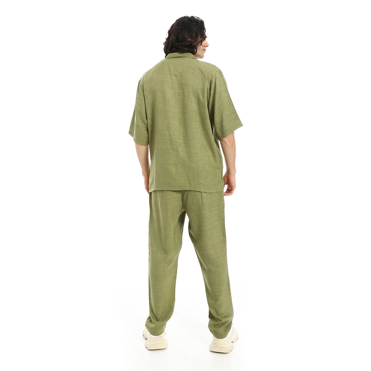 ريد سيركل - طقم قميص وسروال كتان بياقة مطوية - للرجال
