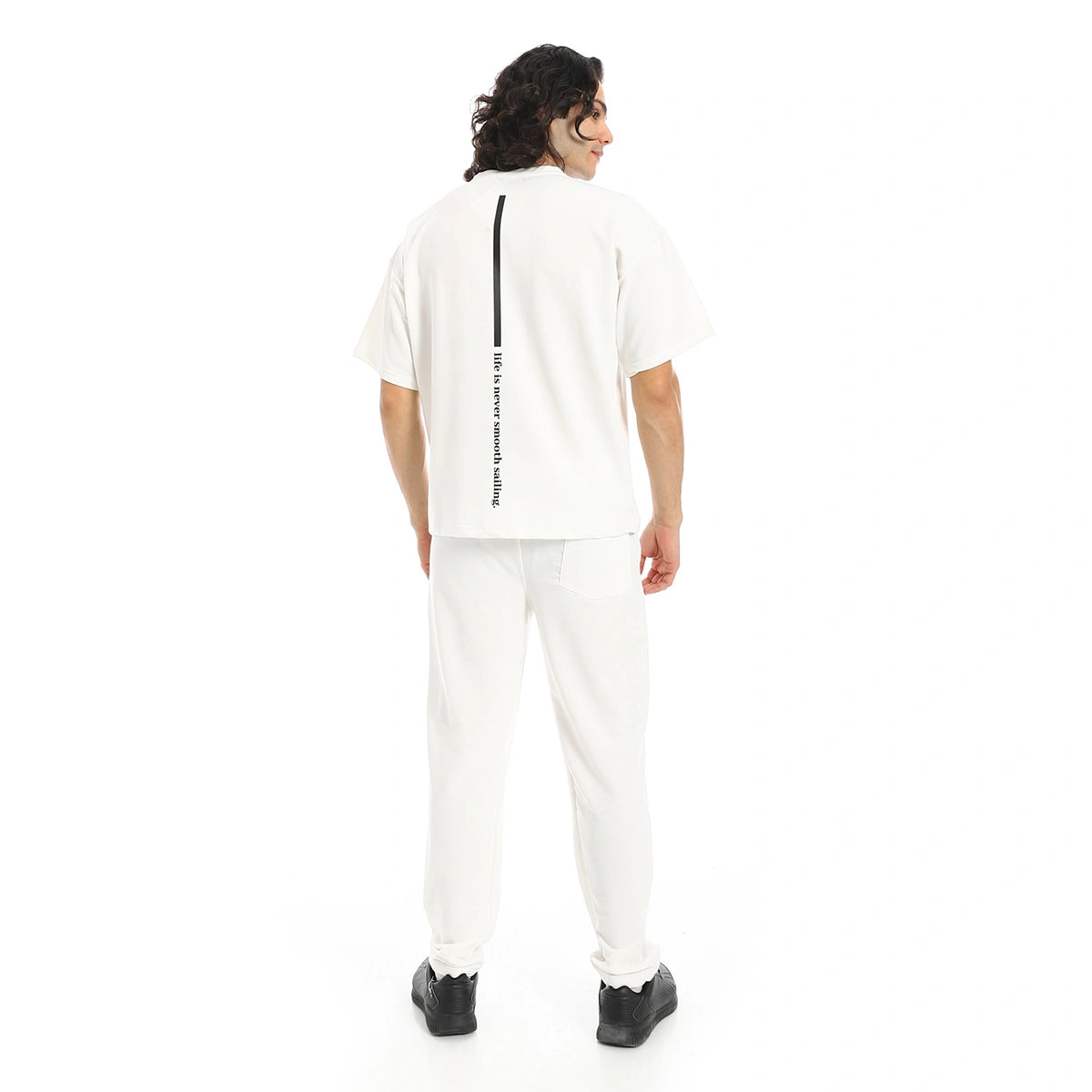 ريد سيركل - طقم تي شيرت وسروال مطبوع أبيض سهل الارتداء من الخلف - للرجال