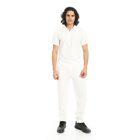 ريد سيركل - طقم تي شيرت وسروال قصير بياقة مطوية باللون الأبيض - للرجال