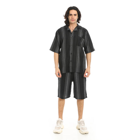 ريد سيركل - طقم قميص وشورت بأزرار إغلاق مخططة - للرجال