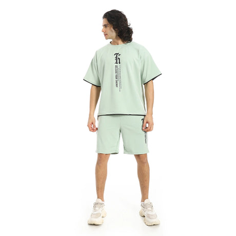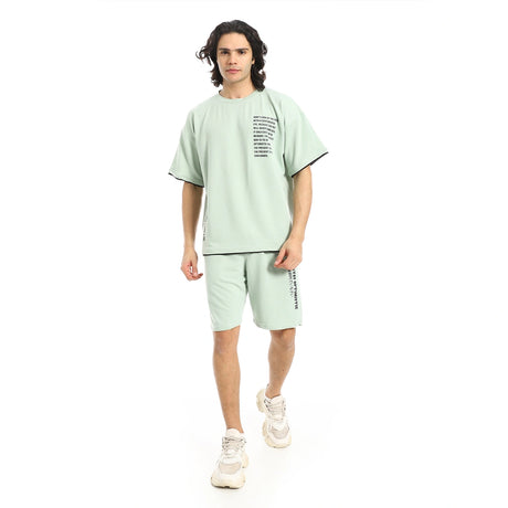 طقم تي شيرت وشورت مطبوع سهل الارتداء من ريد سيركل - للرجال