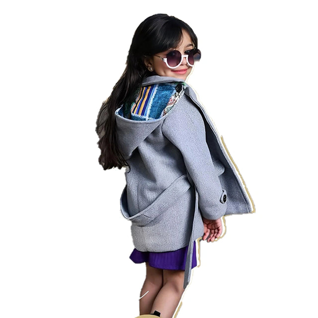 Girls' jacket - long sleeves - capped jacket - side pockets - drawstring closure.