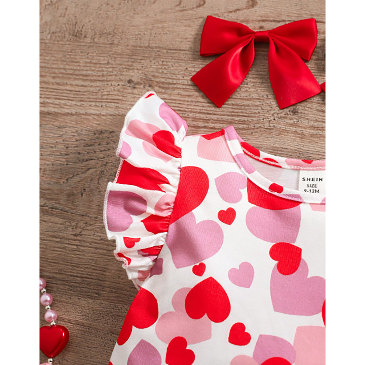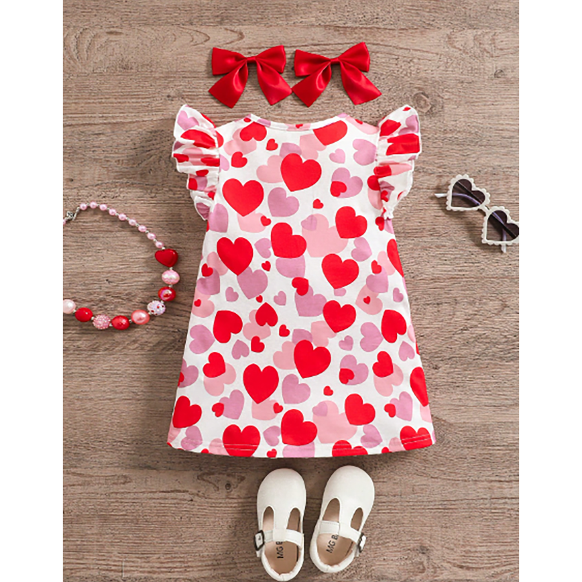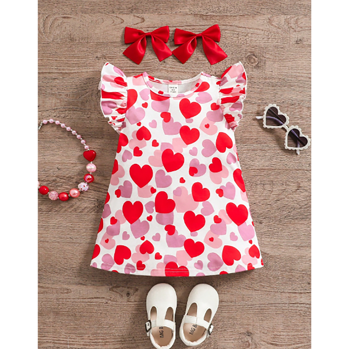 شي أن - فستان صيفي قطني مضغوط مطبوع بقلوب للفتيات الصغيرات، ثوب كاجوال مريح