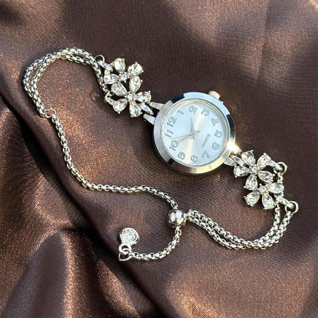 روزا - ساعة سحب نسائية باللون البنفسجي مرصّعة بفصوص الماس على شكل بتلة - أبيض / مقاس واحد تم طلبه مسبقًا وسيتم شحنه بمجرد عودته إلى المخزون.