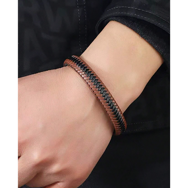 شي أن - اكسسوار رجالي جديد من الجلد المجدول، إبزيم معدني مغناطيسي