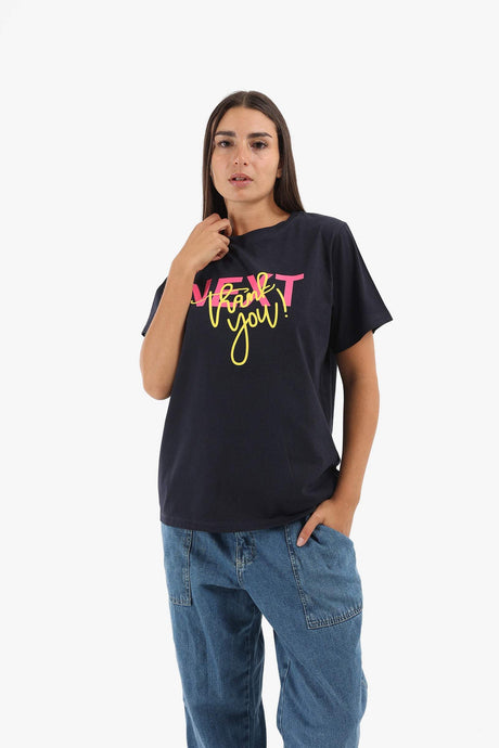 كارينا - تي شيرت كحلي مطبوع للنساء