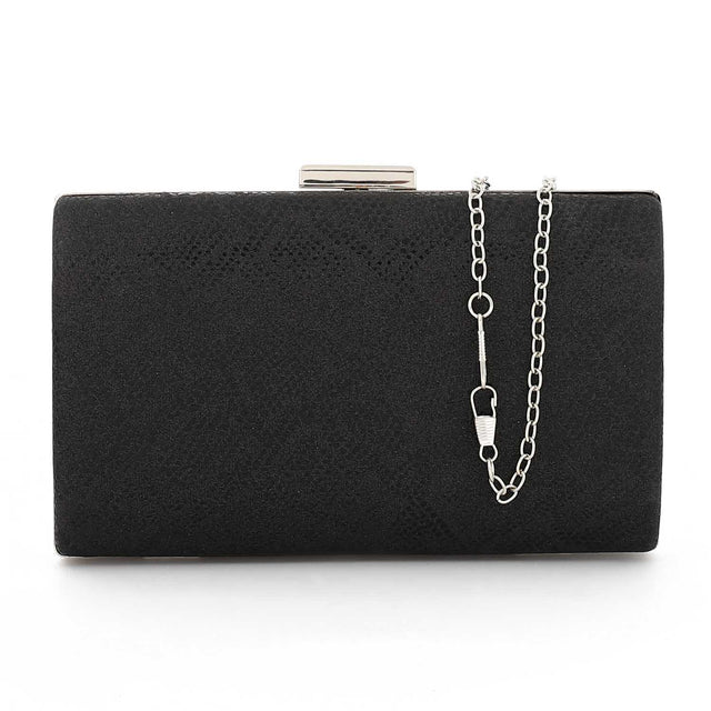 Mr Joe - Elegant Black Textured Hard case Clutch with Chain Strap -4147