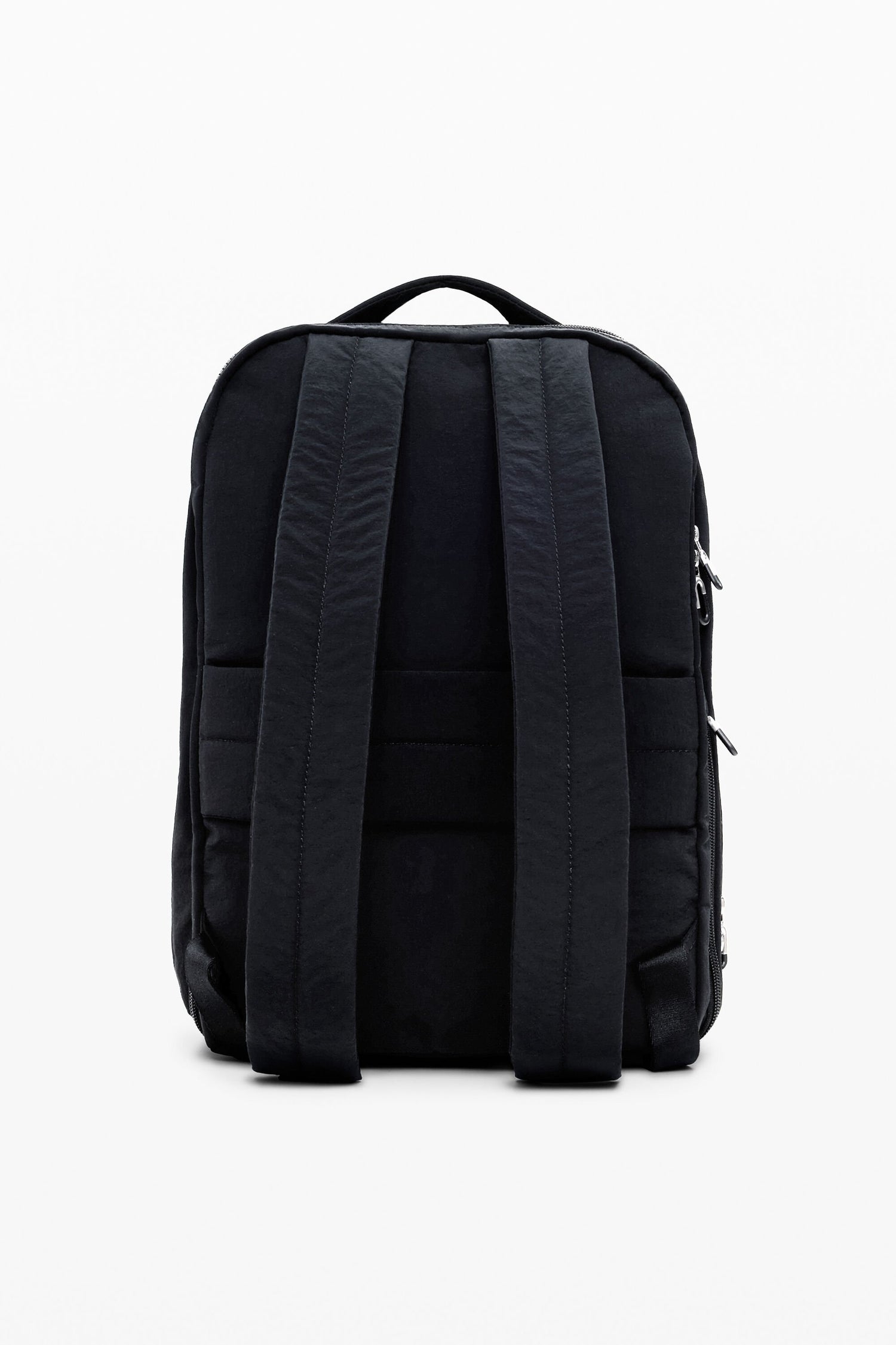 60% POLYESTER, 40% POLYAMIDE - Large capacity backpack, with several exterior pockets and removable interior toiletry bag, and logo detail on metallic applique.