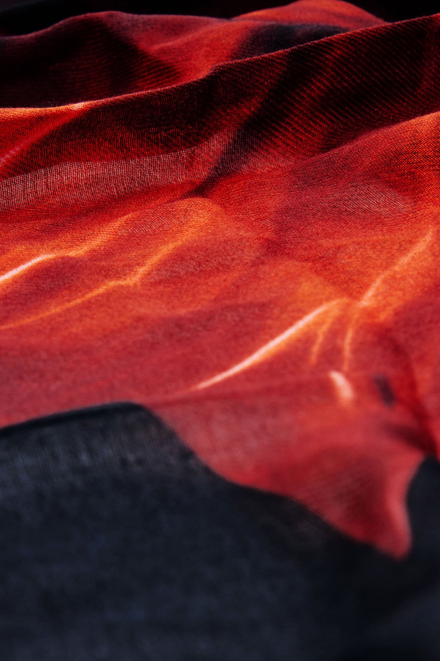 100% VISCOSE - Large rectangular scarf with a large flower print in red tones on a black background.