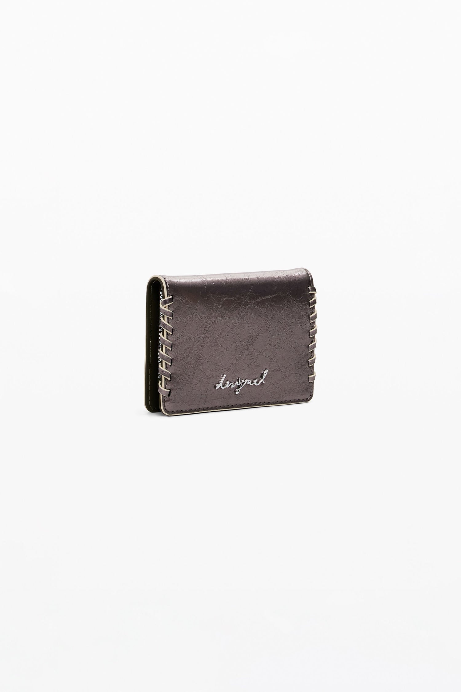 100% POLYESTER - Small wallet in faux leather fabric with metallic finish, with removable cardholder and zipper closure.