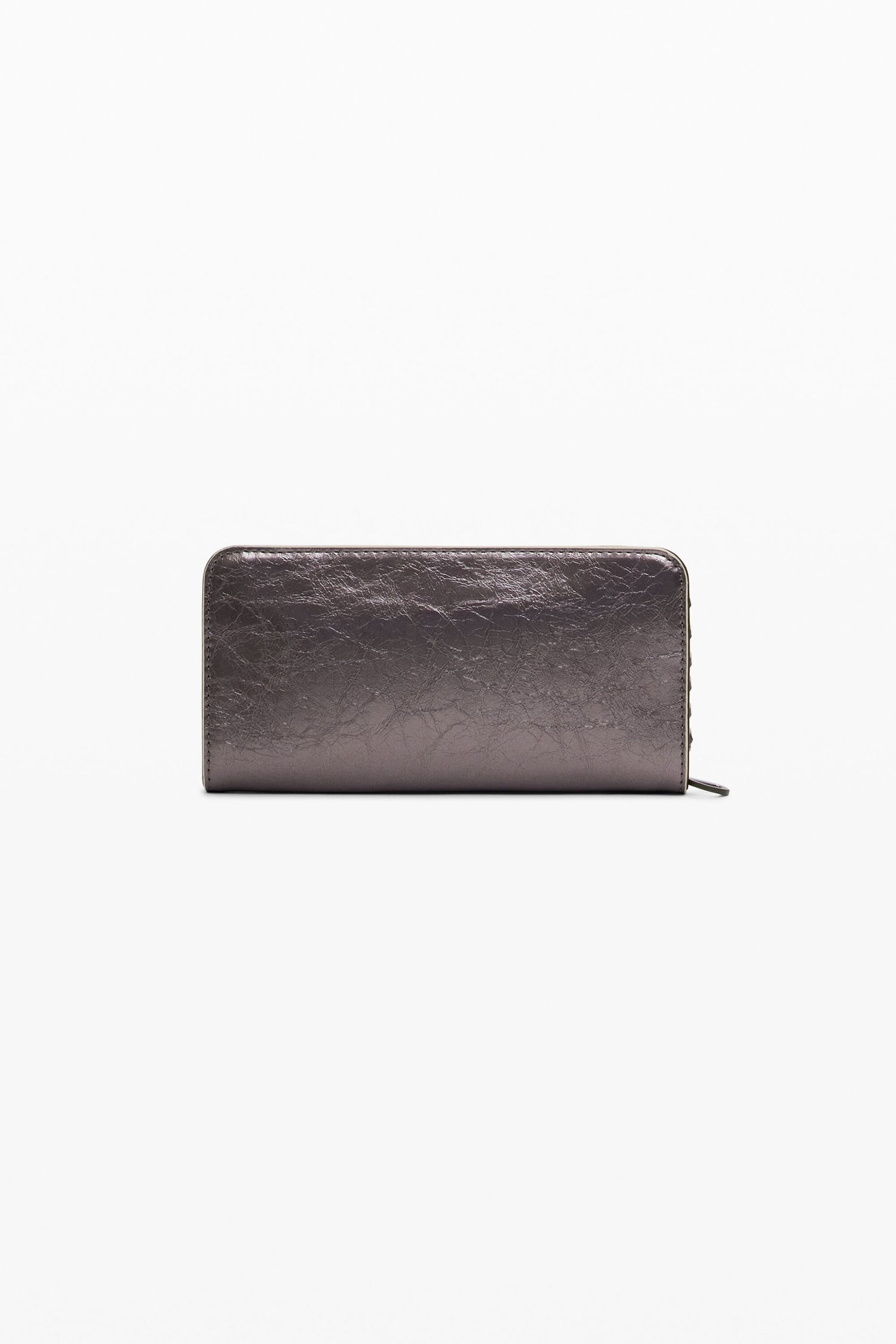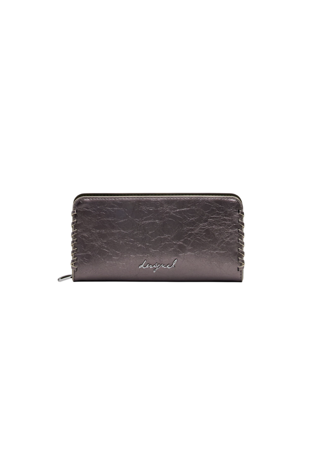 100% POLYESTER - arge elongated wallet, in faux leather fabric, zipper closure, removable cardholder, braided details, and metallic finish.