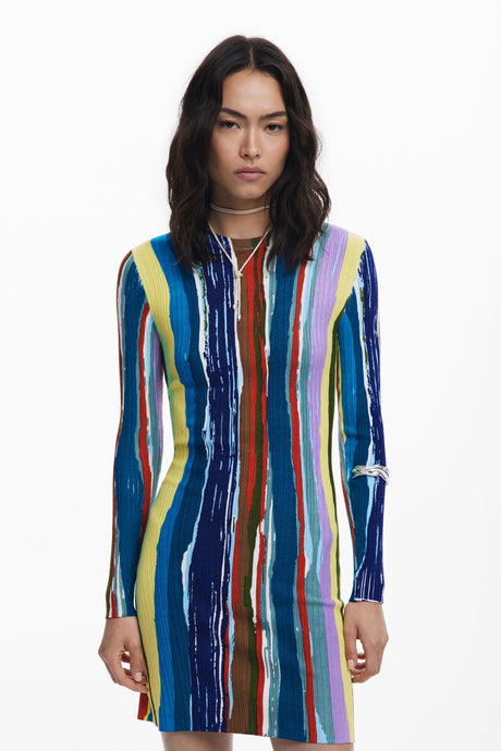 Desigual - Ribbed dress with colored stripes