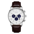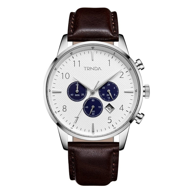 TRNDA MEN'S TIMEPIECE - STAINLESS STEEL & BROWN LEATHER - SILVER WHITE DIAL ELEGANCE