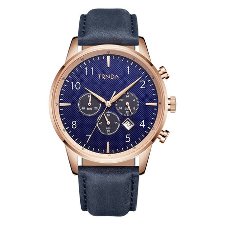 TRNDA ROSE GOLD STAINLESS STEEL MEN'S WATCH - ELEGANT BLUE DIAL & LEATHER BAND