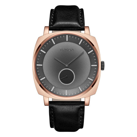 TRNDA SQUARE ROSE GOLD STAINLESS STEEL MEN'S WATCH - TRENDY LEATHER BAND & UNIQUE GREY DIAL