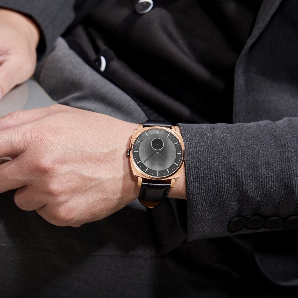 TRNDA SQUARE ROSE GOLD STAINLESS STEEL MEN'S WATCH - TRENDY LEATHER BAND & UNIQUE GREY DIAL
