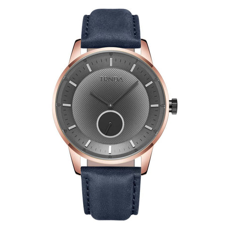 TRNDA STAINLESS STEEL MEN'S WATCH - BLACK CASE & BLUE LEATHER BAND - TIMELESS STYLE