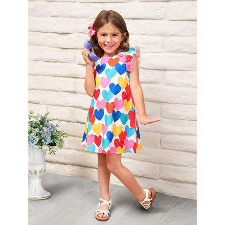 R-Shein - Baby girl's dress with heart print, ruffle hem and belt