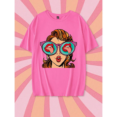 R-Shein - SweetSlumber Women's Contrast Leopard and Lips Print Pajama Set